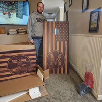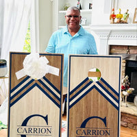 "My husband was blown away by these cornhole boards. The quality and design were simply amazing. He uses them as decor when not in use."