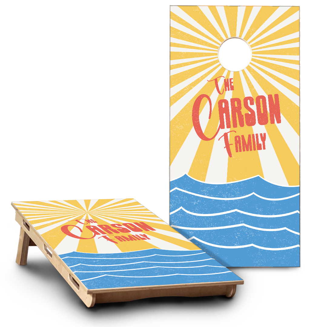 Retro sun & waves with last name