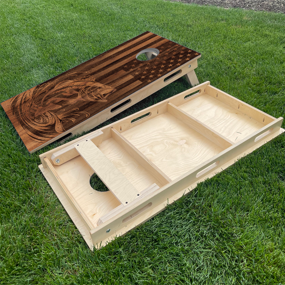 Our boards feature inlaid tops with no visible nails or screws on the playing surface, giving you a smooth, professional look and consistent gameplay every time. Unlike mass-produced sets, we handle the entire process right here in Wisconsin, USA, guaranteeing fast turnaround and attention to detail.