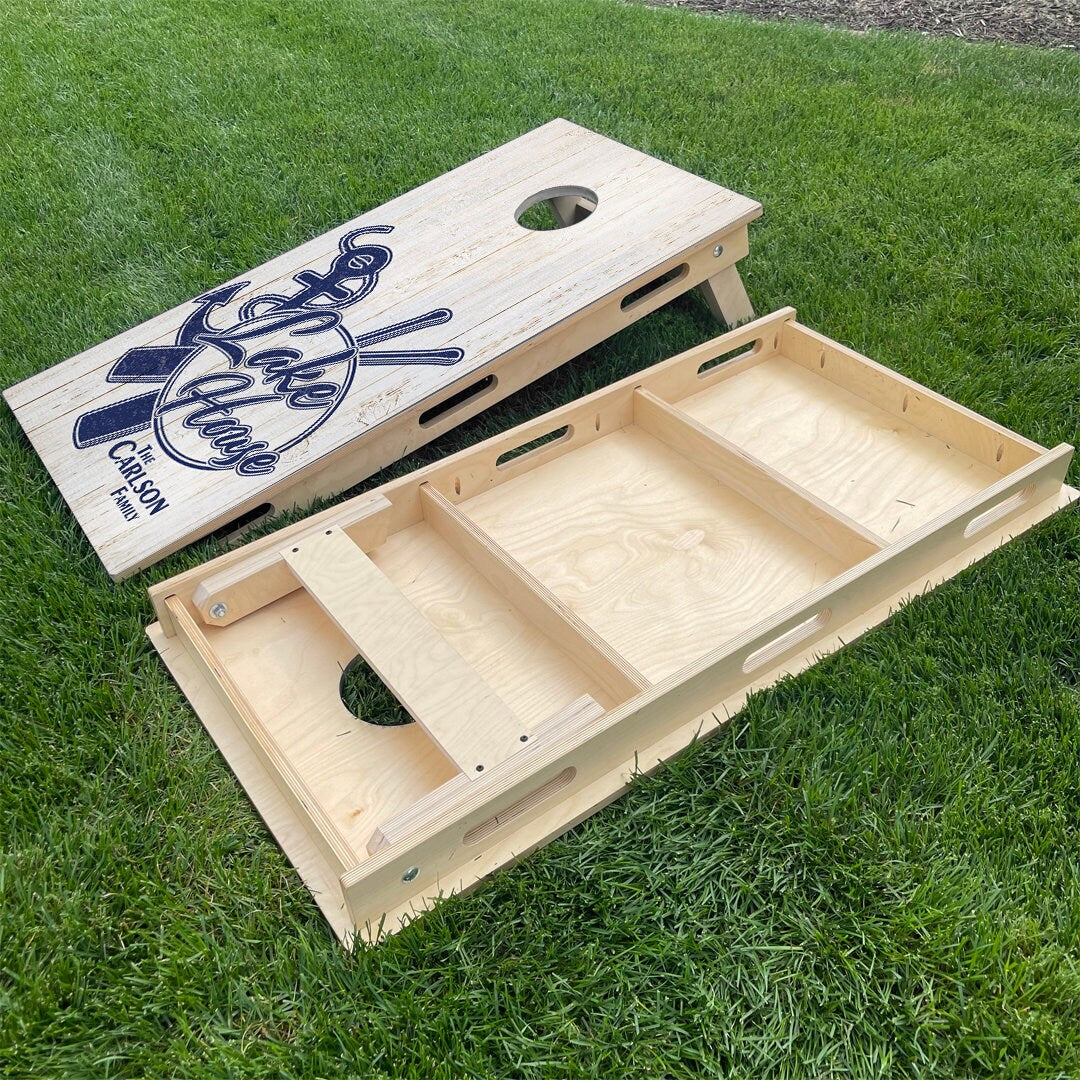 Why wait for custom?! We manufacture and produce all aspects of this cornhole set right here in America in Wisconsin - with FAST processing times & FREE SHIPPING!