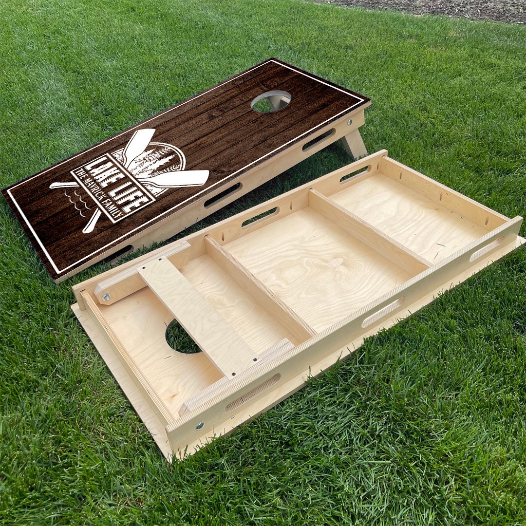 Step up your outside lawn games with this premium CUSTOM cornhole set! We go the extra steps to ensure these will be of the highest quality ready to last a lifetime. All boards are made out of premium 3/4" thick wood, digitally CNC machined, direct printed and sealed with numerous coats of clear coat for lasting protection. The board tops are inlayed so there will be NO visible nail or screw holes on the playing surface.