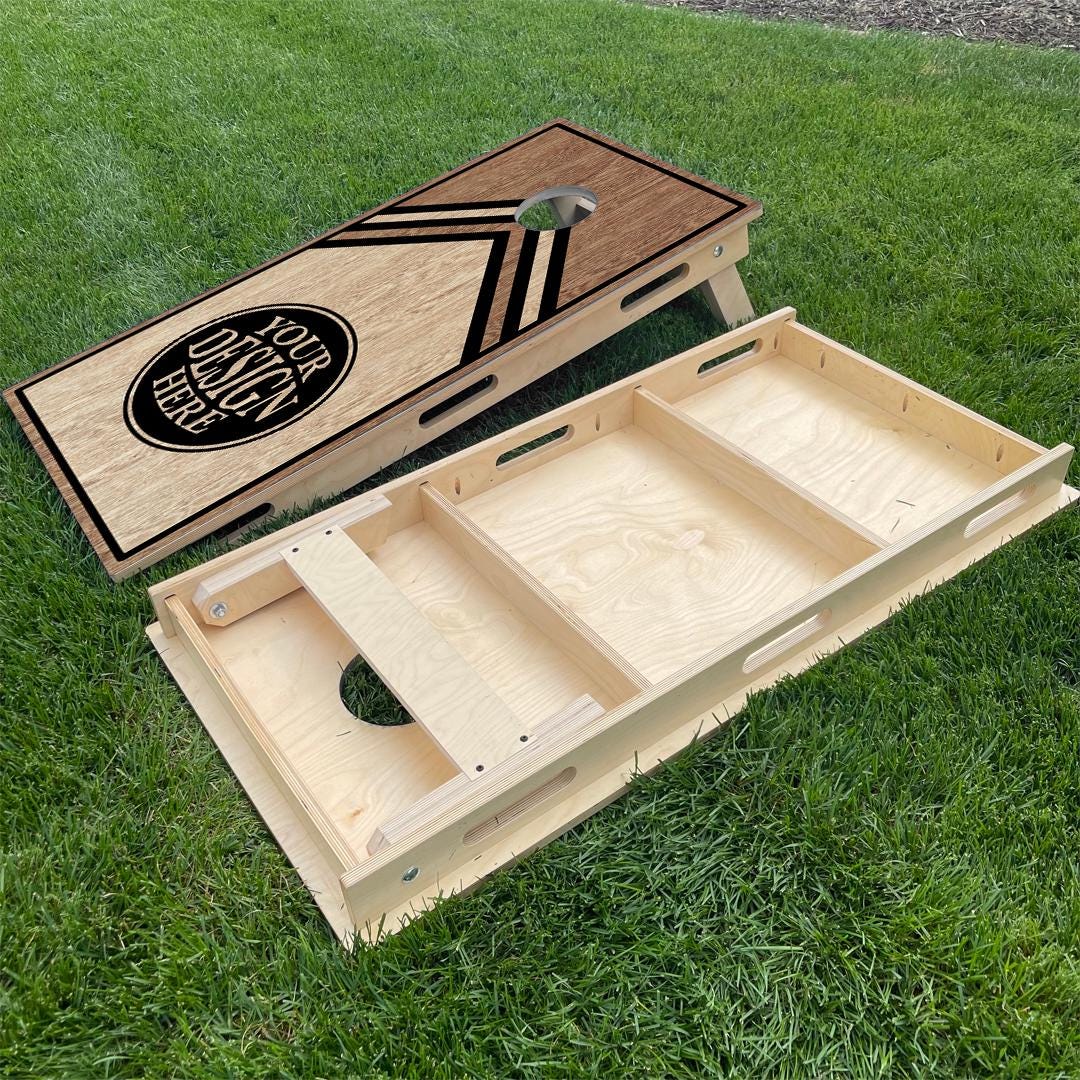 Step up your outside lawn games with this premium CUSTOM cornhole set! We go the extra steps to ensure these will be of the highest quality ready to last a lifetime. All boards are made out of premium 3/4" thick wood, digitally CNC machined, direct printed and sealed with numerous coats of clear coat for lasting protection. The board tops are inlayed so there will be NO visible nail or screw holes on the playing surface.