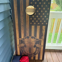 "My husband was blown away by these cornhole boards. The quality and design were simply amazing. He uses them as decor when not in use."